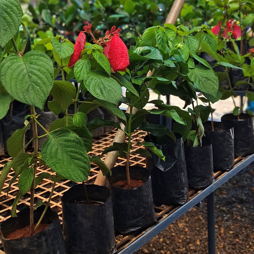 Mussaenda philippica (Mussaenda) is an ornamental flowering shrub known for its colorful bracts that surround small star-shaped flowers, commonly used in tropical gardens and landscaping. It grows well in warm climates with ideal temperatures of about 20โ35 ยฐC. The plant prefers full sunlight, well-drained fertile soil, and moderate watering for healthy growth. Tropical regions like Kerala provide suitable conditions due to warm temperatures, high humidity, and regular rainfall, allowing the plant to grow vigorously and flower well.