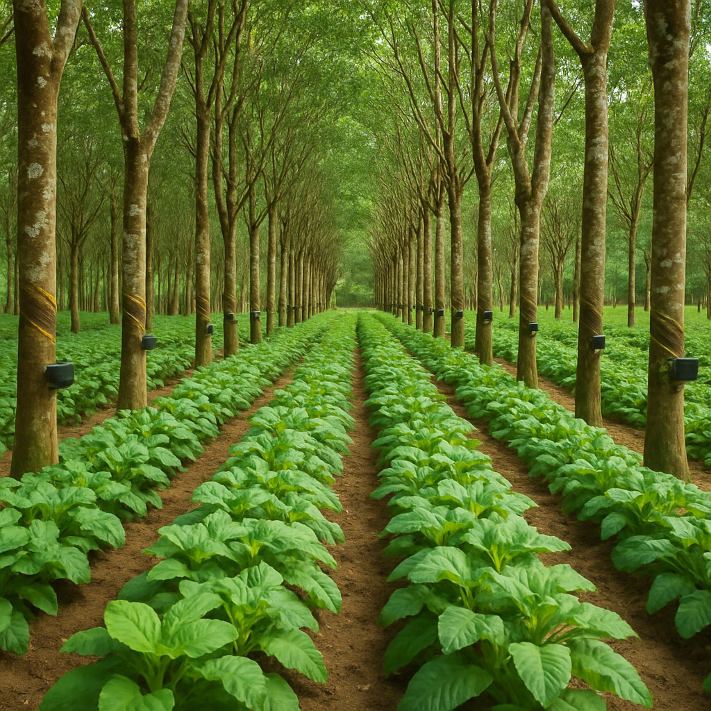 Utilizing the space between immature rubber plants increases early farm income and land-use efficiency.